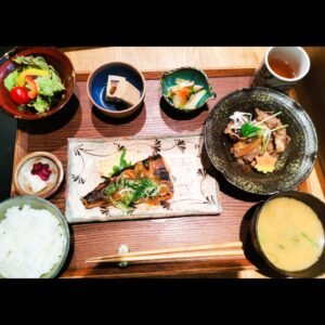 ・Spread miso on grilled mackere topped with Kujo green onions.